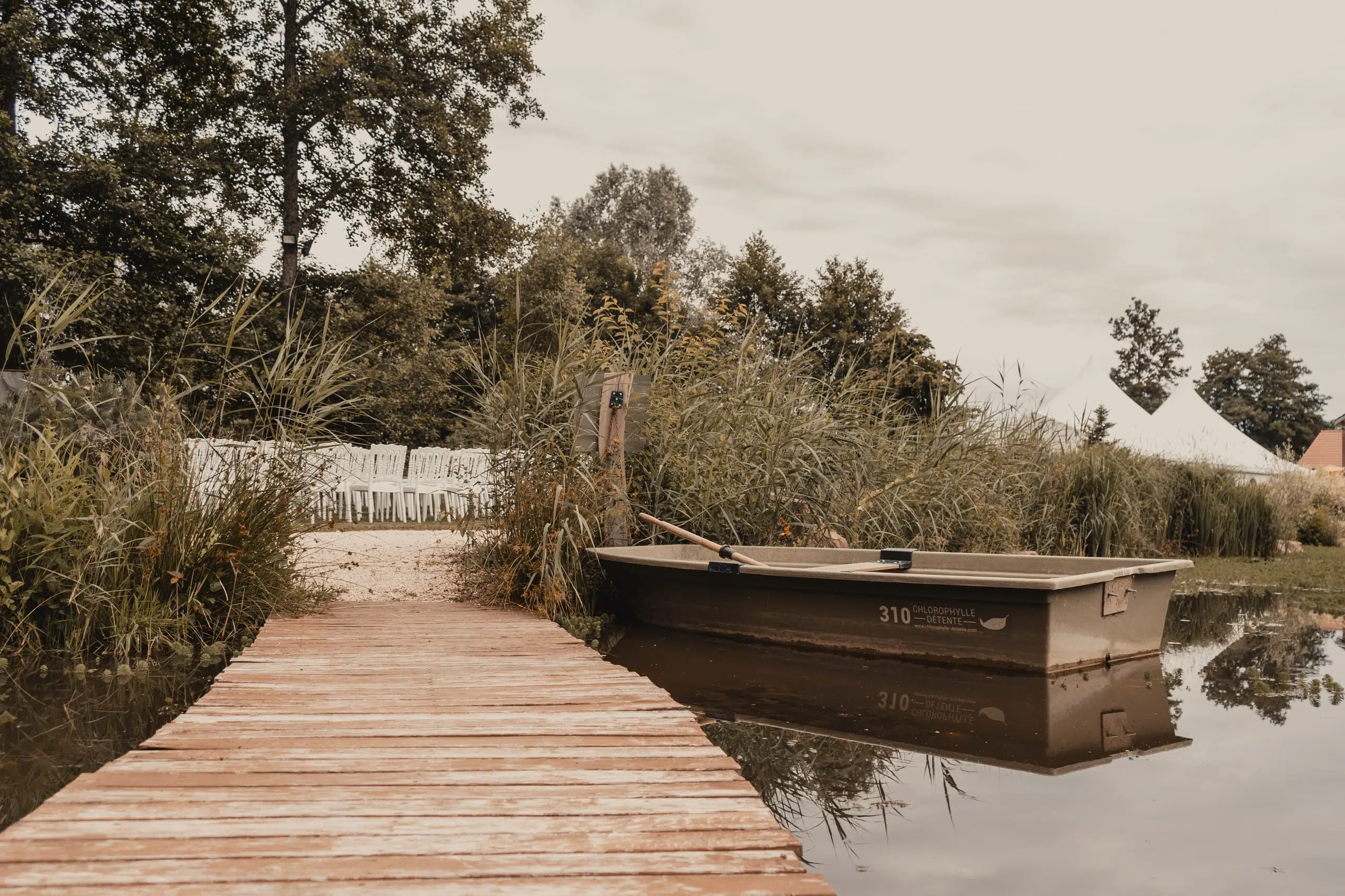 Une cérémonie extérieure, une pluie battante, mais un mariage empli de légèreté à l’image de Marjolaine, douce et discrète et Dylan, impassible face à la météo.